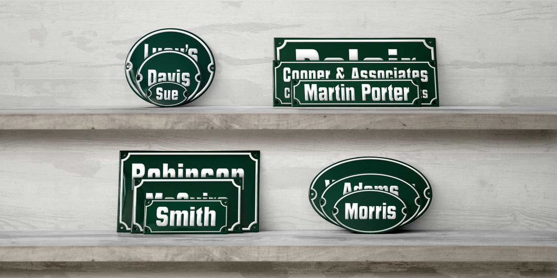 Se näyttää luonnolliselta joka ympäristössä. Vahva kontrasti puhtaanvalkoisen kirjoituksen ja syvänvihreän taustan välillä varmistaa sen, että nämä kyltit näkyvät kauas. Lähempää katsottuna emalinen kohokuviointi antaa kyltille lisäulottuvuutta. Arrowhead-kyltti sulautuu maisemaan olematta kuitenkaan näkymätön. Jokainen valmistamamme kyltti sisältää elinikäisen takuun. Tämä kertoo omistautumisestamme perinteisille, aikaa kestäville tekniikoille.
